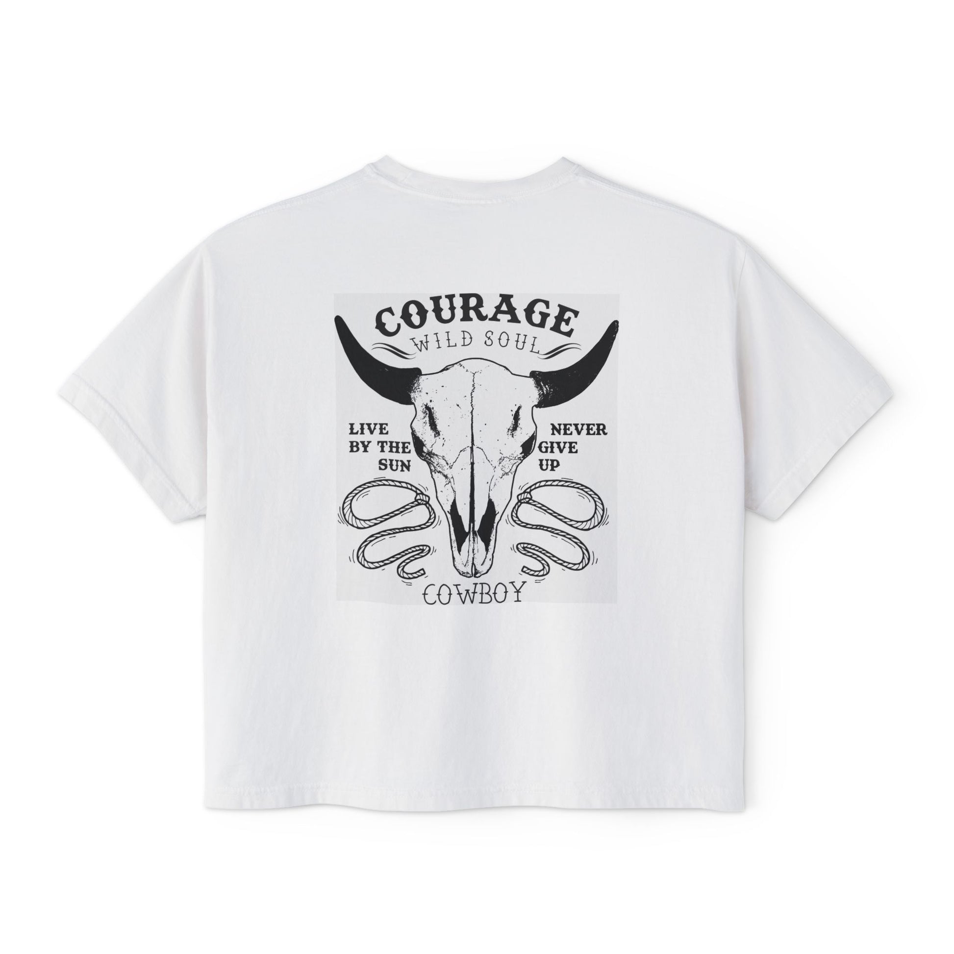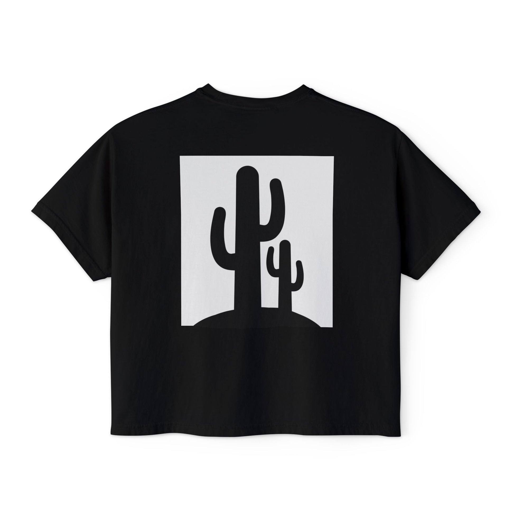 A stylish women's graphic boxy tee made from 100% ring-spun cotton that provides a vintage look. The shirt has a boxy fit and is slightly cropped, perfect for casual wear. Ideal for women looking for a comfortable and trendy t-shirt for everyday wear or a casual outing.